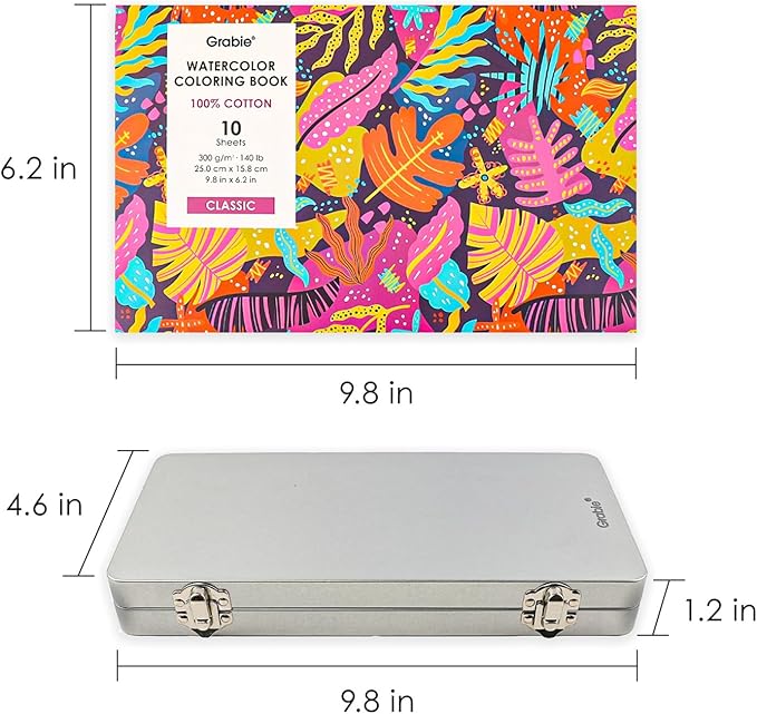 Grabie Watercolor Paint Set, Watercolor Paints, 168 Colors, Painting Set with Coloring Book, Water Brushes and Drawing Pencil, Art Supplies, Perfect Starter Kit for Watercolor Painting