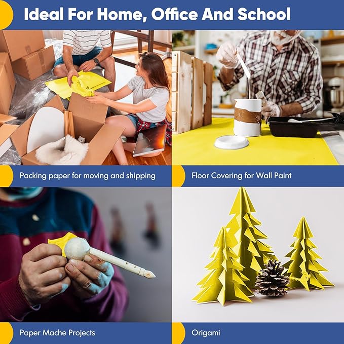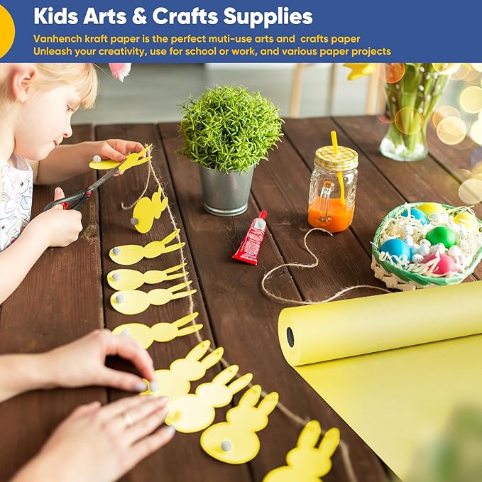 - Thick and Durable Paper. Made with industrial grade heavy duty paper, Vanhench yellow wrapping paper roll is sturdy and durable, does not rip or tear easily. The kraft paper roll can be used as parcel packing paper, great protection for shipping, packing and moving, better alternative to newsprint paper sheets and construction paper for arts and crafts paper. Meets your needs for everyday use.