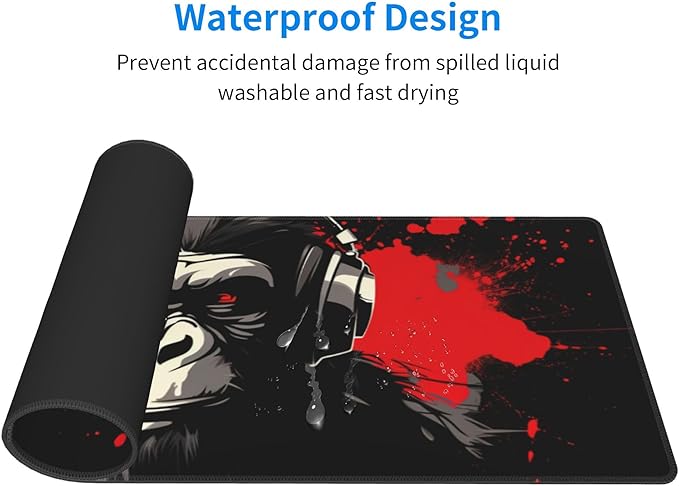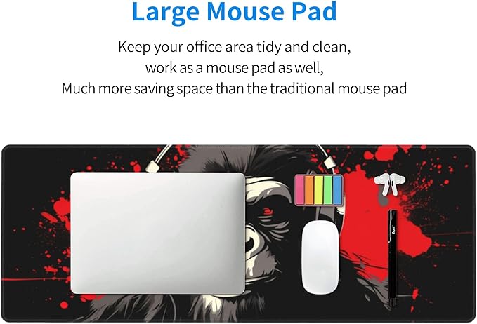Stylish Gorilla with Headphones Against Themed Mouse Pad 31.5 x 12 Inch, Anti-Slip Rubber Base, Ideal for Computer, Laptop, Office & Home Use