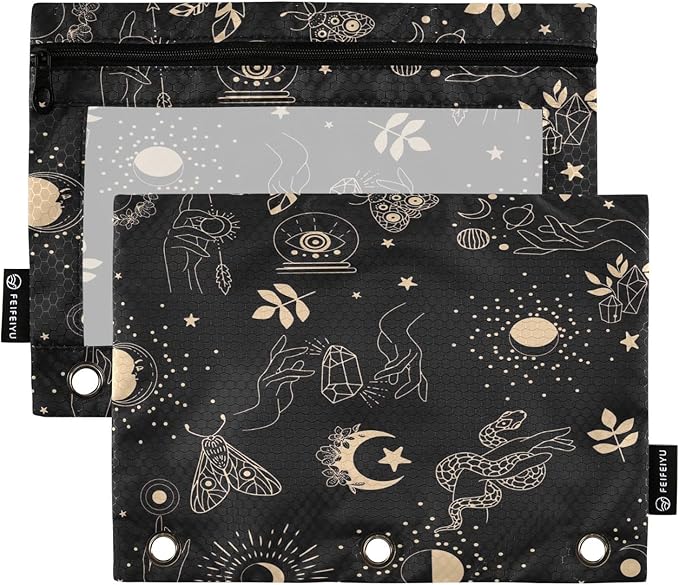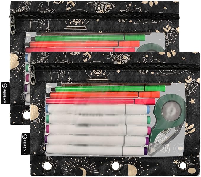 - 3 Ring Pencil Pouch: Zipper pouch with rivet enforced holes perfectly compatible with all standard 3 ring binders, widely used in college, school, office, home