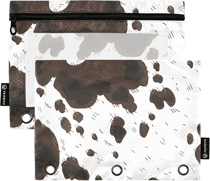 ZAZYXTJ Cow Print Binder Pencil Pouchs 3 Ring with Zipper Clear Window Office Organizers bag for School Students Teacher Supplies 2 Pack