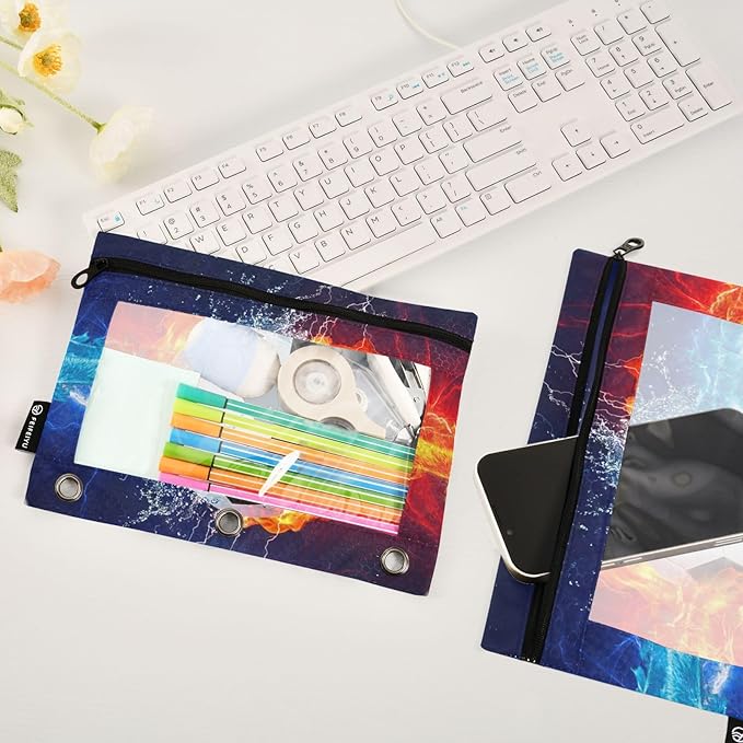 - 3 Ring Pencil Pouch: Zipper pouch with rivet enforced holes perfectly compatible with all standard 3 ring binders, widely used in college, school, office, home