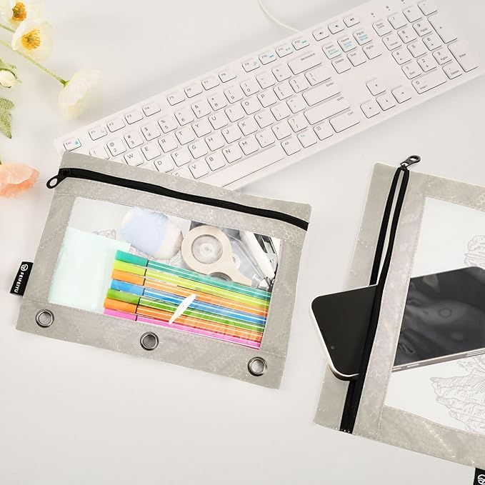 - 3 Ring Pencil Pouch: Zipper pouch with rivet enforced holes perfectly compatible with all standard 3 ring binders, widely used in college, school, office, home