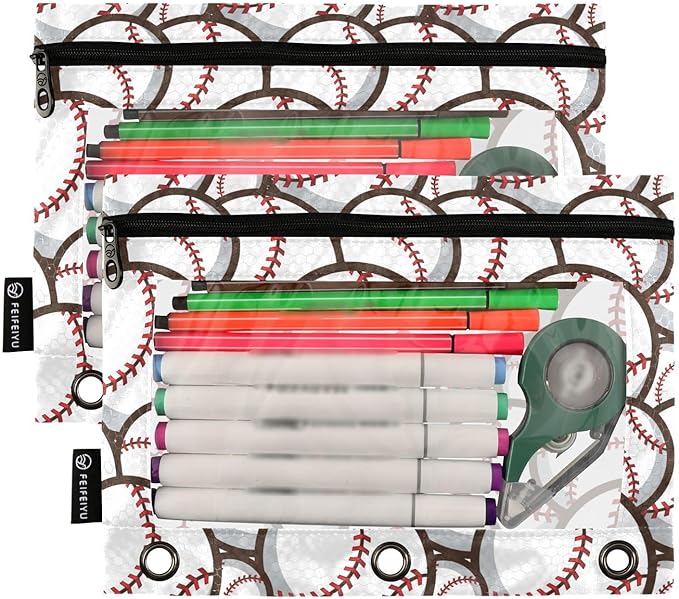 ZAZYXTJ Baseball Binder Pencil Pouchs 3 Ring with Zipper Clear Window Office Organizers bag for School Students Teacher Supplies 2 Pack