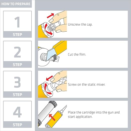 - HANDY CARTRIDGE FITS MOST APPLICATOR GUNS —Just cut film off the cartridge's tip and screw on static mixer, then insert cartridge into gun. The narrow tip makes it easy for accurate placement of epoxy
