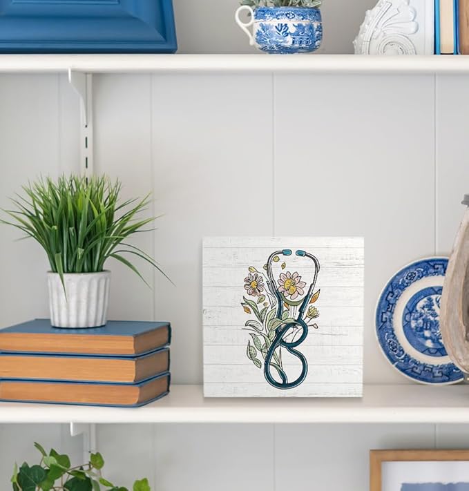 Floral Stethoscope Sign - Nurse Office Decor, Nurse Appreciation Gifts, RN Gifts, 5x5