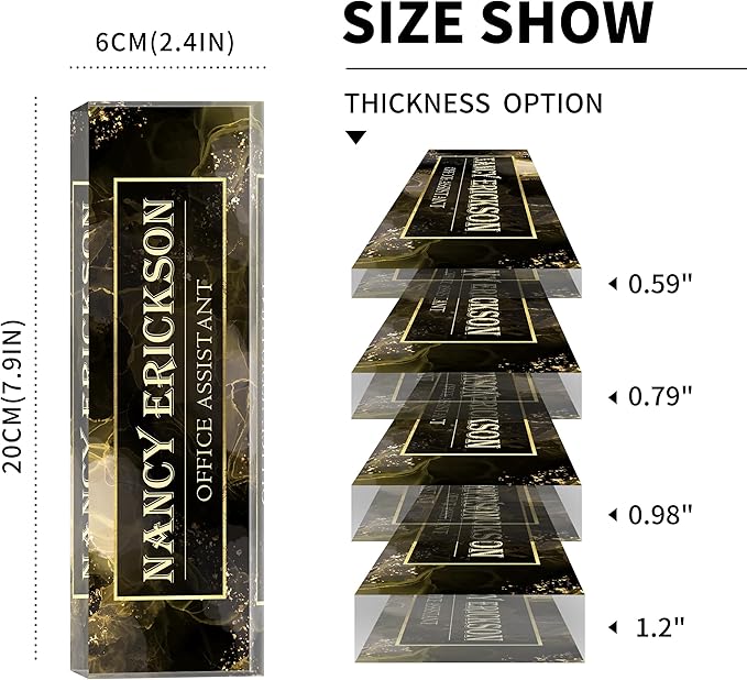 - 【High-Quality Acrylic Material】Our factory uses high-quality solid acrylic blocks to make name plates, and uses the latest high-definition UV printing machine to ensure that the content on the acrylic name plate is clear and not easily faded. So it will stand out on any desk, fully reflecting your professional ethics.