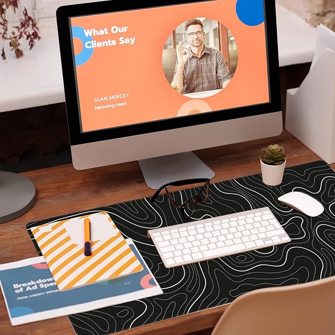 - 🖱️【Robust and Long-Lasting Design】: The edge locking design tackles common issues like desk mat edge wear, deformation, and de-gluing, ensuring a more substantial and durable product. Roll it up, toss it in your bag – no worries about warping. The cutting-edge stitching technology guarantees that the mouse pad won't wear out or deform during use. The stitched frame adds an extra layer of durability, preventing it from wearing out or coming apart like other mouse pads.