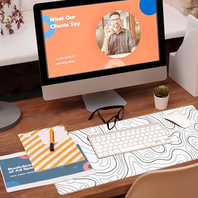 Desk Mat,White Topographic Contour Map Desk Pad,Topographic Contour Large Gaming Mouse Pad for Desk,Extended Big Computer Keyboard Mouse Pad with Non-Slip Base and Stitched Edge,31.5"x11.8"
