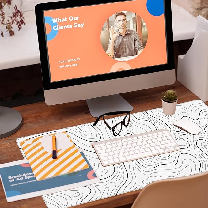 Desk Mat,White Topographic Contour Map Desk Pad,Topographic Contour Large Gaming Mouse Pad for Desk,Extended Big Computer Keyboard Mouse Pad with Non-Slip Base and Stitched Edge,35.4"x15.7"