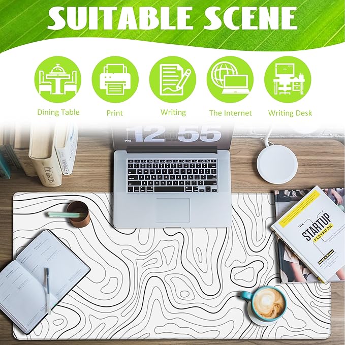 - 🖱️【Anti-Slip Excellence】: The soft and flexible non-slip rubber bottom provides increased friction resistance, keeping the desk pad securely in place on your desktop. It maintains an even flatness, even on imperfect surfaces, allowing you to fully immerse yourself in your work or game without the annoyance of mouse pad movement.