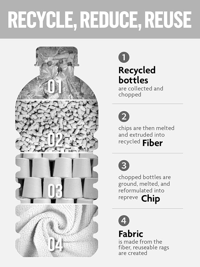 - [Alternative to Paper Towels] Designed for durability, the cloths are washable and reusable up to 50 times. The sturdy 175gsm microfiber will be a highly effective cleaning results