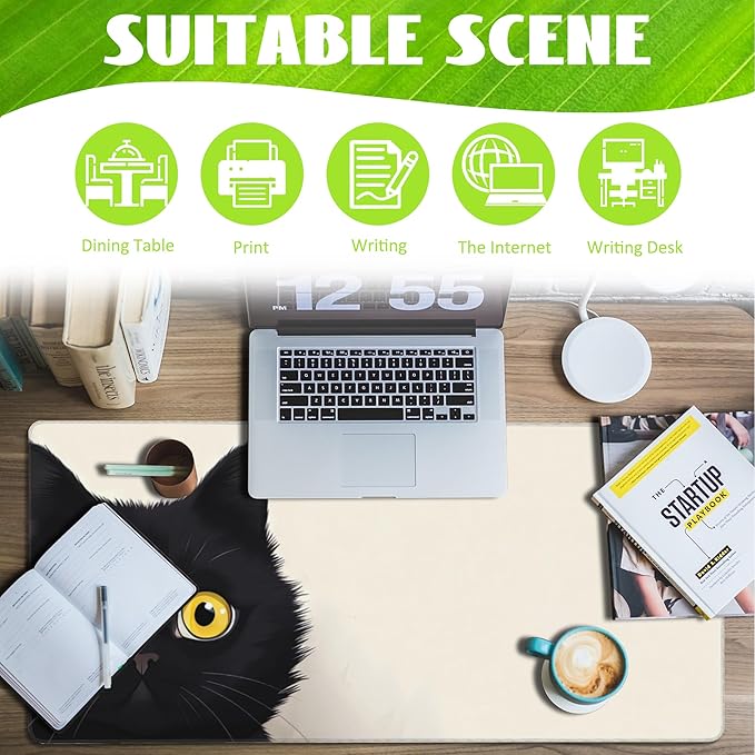 - 🖱️【Anti-Slip Excellence】: The soft and flexible non-slip rubber bottom provides increased friction resistance, keeping the desk pad securely in place on your desktop. It maintains an even flatness, even on imperfect surfaces, allowing you to fully immerse yourself in your work or game without the annoyance of mouse pad movement.