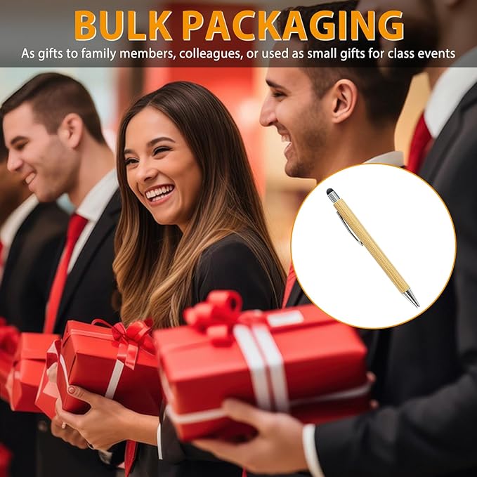 Bamboo Pens Bulk with Touch Stylus Tip Wooden Bamboo Pens Engraving Wooden Ballpoint Pen Customizable Gift Pen Bulk 50pcs