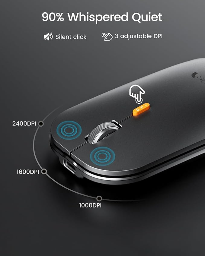 - Responsive Keys and Quiet Typing: This keyboard boasts a responsive scissor switch, allowing for efficient and hushed typing. The low-profile design and soft-touch keys elevate the typing experience to a new level of fingertip comfort and The mouse features three adjustable DPI levels of 1000/1600/2400, providing you with customizable sensitivity options
