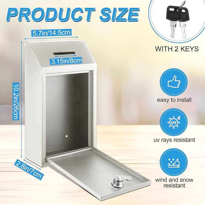 - Proper Size: our package contains a lockbox for mail and 2 keys, which measures 10.24 x 5.71 x 2.95 inches/ 26 x 14.5 x 7.5 cm, the appropriate size can not take up too much space in your home and bring you convenience