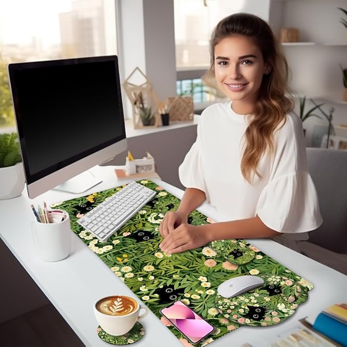 - Amazing Gifts: The cat xxl gaming mouse pad set adds fun and style to any workspace while keeping it tidy. Gifts for cat lovers, women, men, coworkers, bosses, daughter, girls and family, it's great for graduations, birthdays, or new job celebrations. Ergonomic and practical