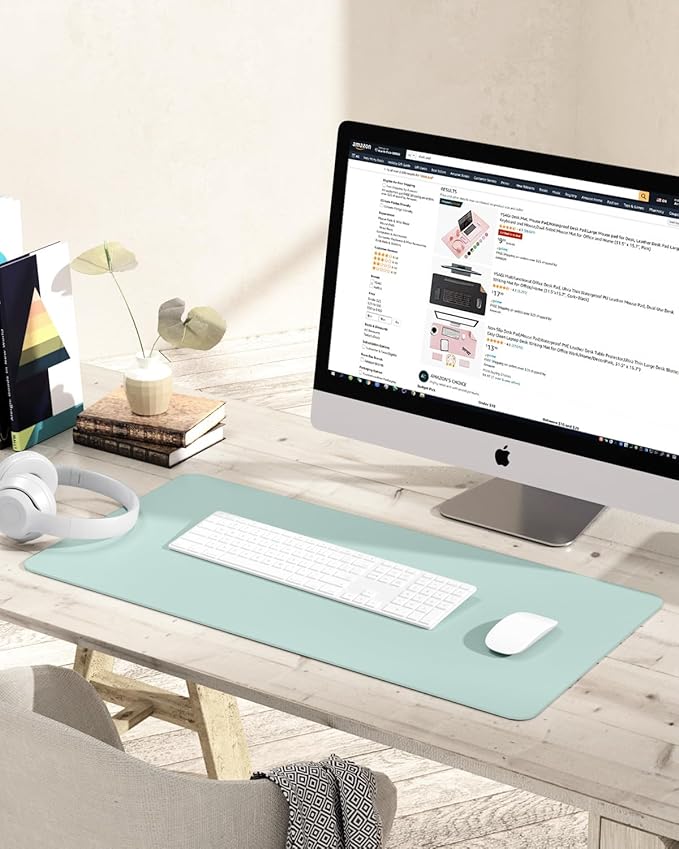 YSAGi Non-Slip Leather Desk Pad, Waterproof Laptop Computer Desk Keyboard Mat, Table Protector Blotter Mat, Large Mouse Pad for Office/Work/Home/Decor(Mint Green, 31.5" x 15.7")