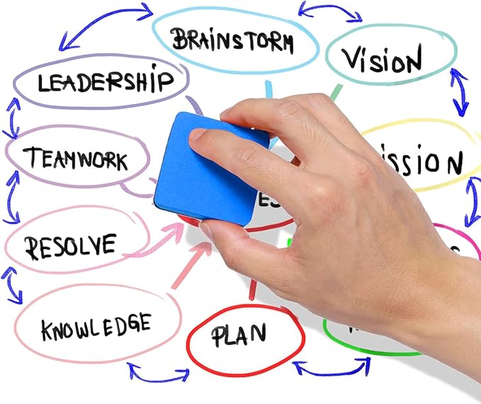 Dry Erase Markers, 48 Pack Magnetic Whiteboard & Chalkboard Cleaners, Small Magnetic Erasers (Blue)