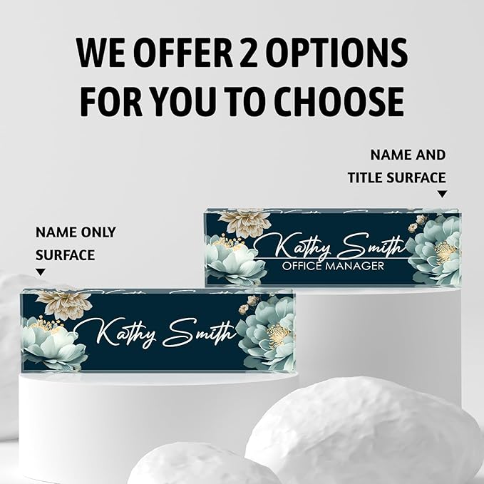Personalized Name Plate for Desk, Custom Desk Name Plate, Acrylic Name Plate Office Desk Accessories, Personalized Office Gifts for Coworkers Teachers, Employee Appreciation Gifts (B-White Flower)