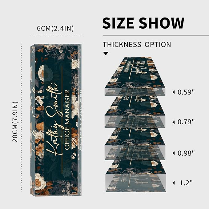 - 【High-Quality Acrylic Material】Our factory uses high-quality solid acrylic blocks to make name plates, and uses the latest high-definition UV printing machine to ensure that the content on the acrylic name plate is clear and not easily faded. So it will stand out on any desk, fully reflecting your professional ethics.