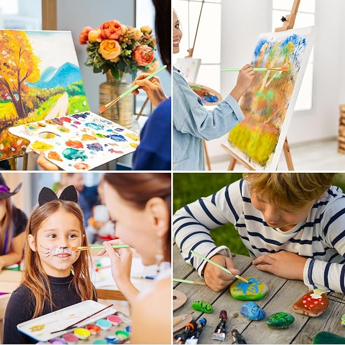 - 【Applicable scene】:This paint brush is suitable for all media including acrylic, watercolor, enamel, oil paint, vinyl, and watercolor pigments, suitable for painting on models, rocks, ceramics, leather, gypsum, etc.professional paint brushes can be used in paintings such as oil painting, watercolor, acrylic painting, human body, plants, miniature, models, ceramics, and arts and crafts.