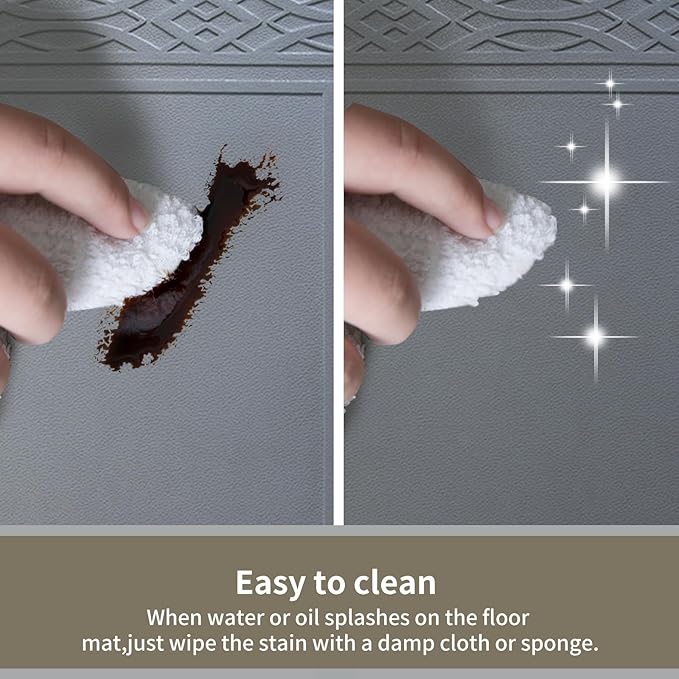 - EASY TO CLEAN:Stain resistant and waterproof material makes Broad i Home Anti Fatigue Mat easily wipe clean and will not collect dirt. Novel innovation of natural wood grain pattern designs on the top of our comfort mat makes you be immersive.