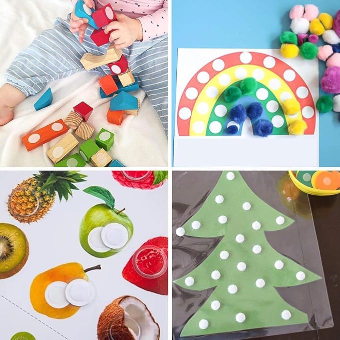 - Widely used: The hook and loop dots can be used for smooth surfaces, such as paper, plastic, glass, leather, metal, etc. These sticky dots are also great for school special education classroom projects