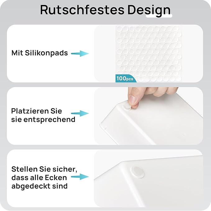 - 【Non-Slip and Durable】Extra 200pcs silicone pads are included, just stick them on the bottom of the plastic trays for non-slip. Made of durable and clear plastic, so you can see what’s in it without digging around or making a mess, help you get a neat lifestyle.