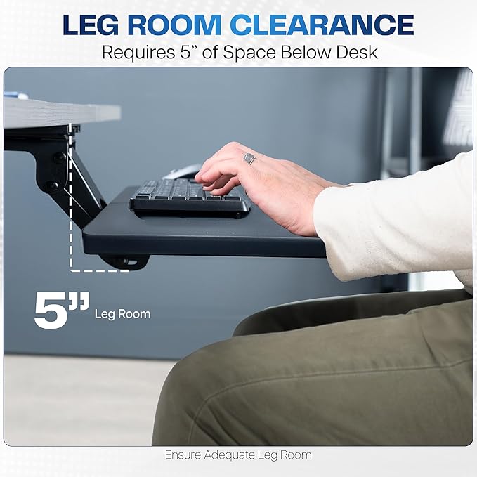 - Ergonomic Keyboard and Mouse Tray: Installs underneath a standard desk for comfortable typing angles --Patent Pending--