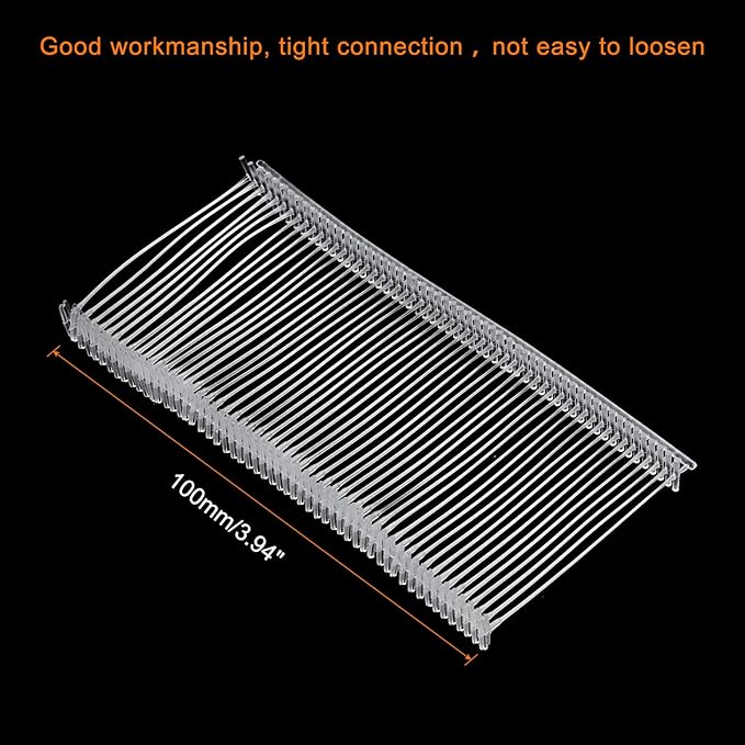 - Fastener Hook Ties Tag Strings,Material: Plastic;Fixed type:Tag gun threading needle;Wire total length:100mm/3.94 Inch;Wideth:7.5mm/0.3 Inch;Single product length:40mm/1.57 Inch;Color:Transparent;Package Contents: 1000Pcs Tags Ties;