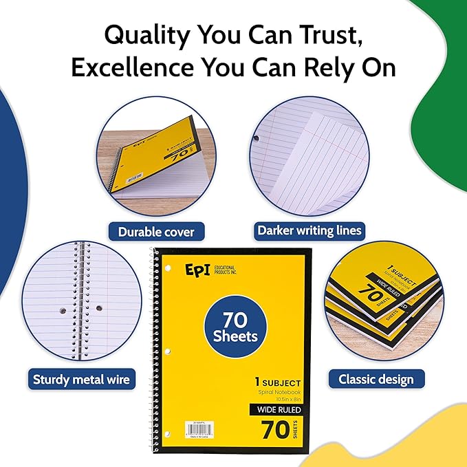 - Versatile & Convenient: EPI Spiral Notebooks are perfect for students, teachers, and professionals. Ideal for note-taking, journaling, and everyday writing tasks at school, office, or home.