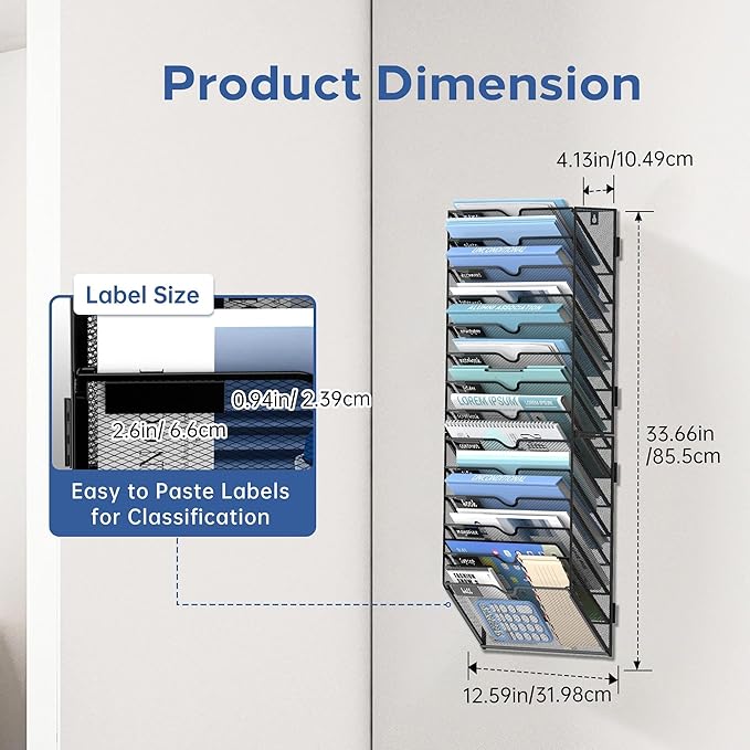 - [Space Saving] This 14-tier mail organizer will be your savior by taking full advantage of vertical space on the wall or over the door. It is a great way to keep your desktop tidy and give you a more comfortable workplace no matter in office, home, classroom or dorm.