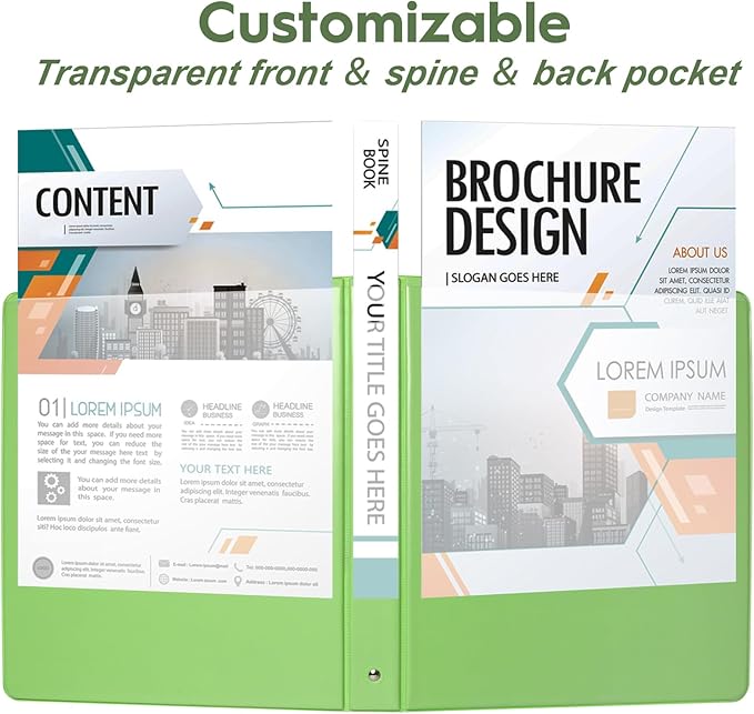- Customizable cover: View binder with a Clear View poly overlay allows you to customize the spine and both covers