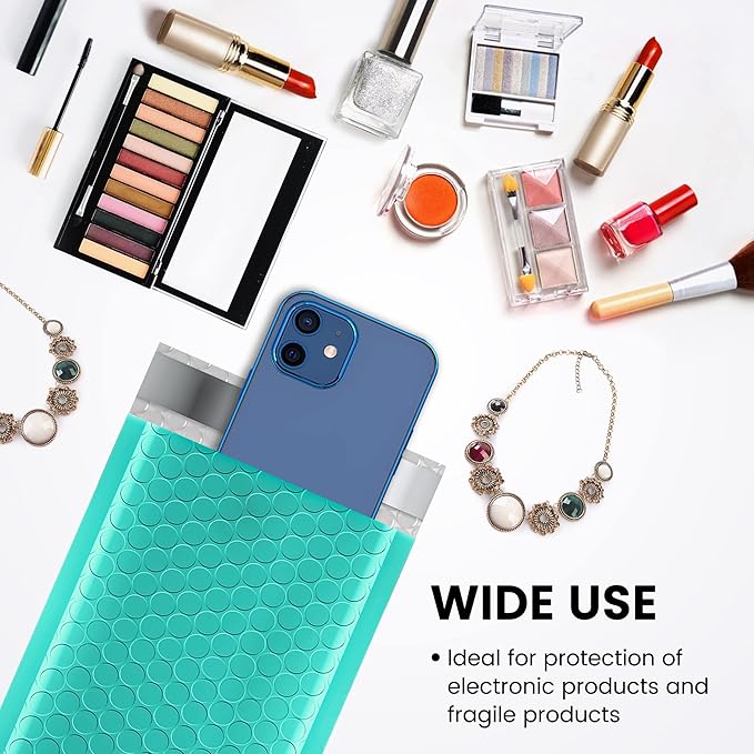 - Perfect Size Teal Bubble Mailers: The small bubble mailers outer size is 4x8 inch, while the inner size is 4x7 inch. It is very suitable to transport for jewelry, makeup, cards, phone case, lips, photos,handcraft and more.
