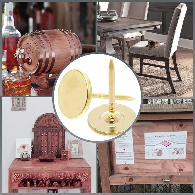 - 1. Versatile Upholstery Nails: Ideal for refurbishing or creating custom furniture, our upholstery nails are designed with a flat head, ensuring a snug fit and a clean look for any project.