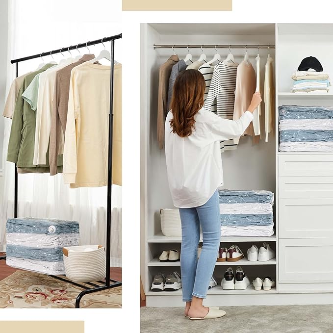 - Meets Different Requirements: Our jumbo vacuum storage bags are made of strong material to meet various purpose such as bedroom storage, moving storage, college dorm room essentials storage closet organizers and storage