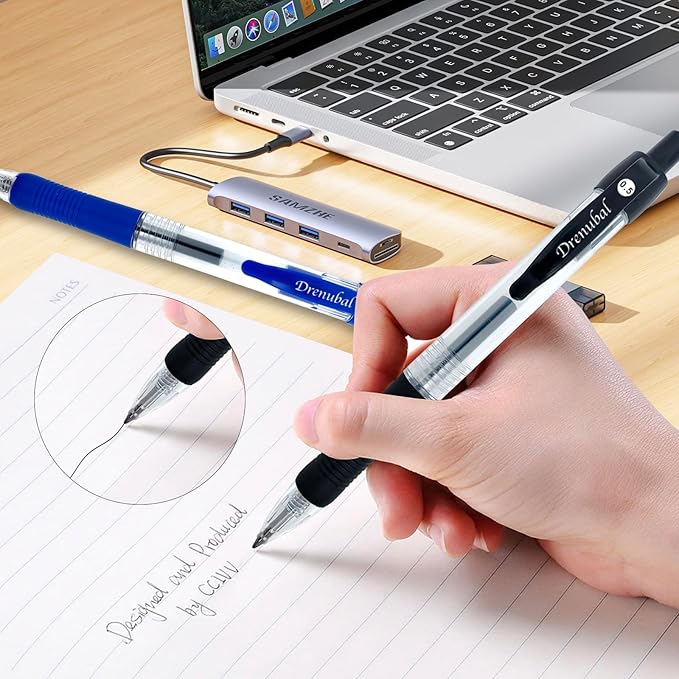 - [Comfort & Portability Design]Write for hours without fatigue! The cushioned rubber grip molds to your hand, while the retractable ink pen body ensures portability. Perfect for students, professionals, or anyone prioritizing comfort during meetings, lectures, or creative sessions.