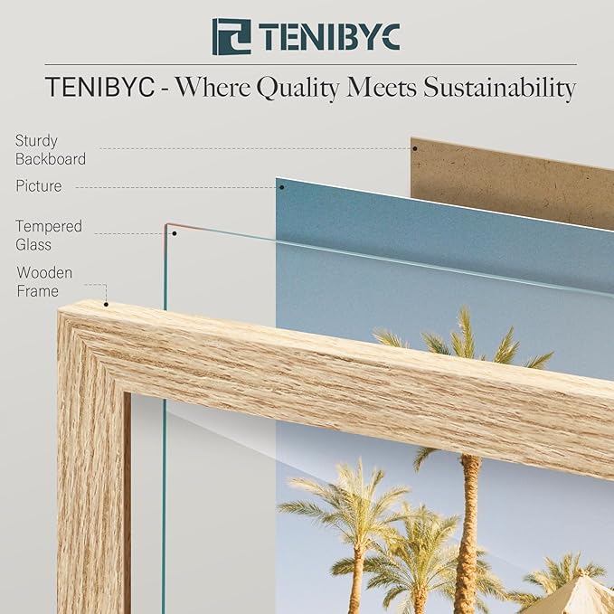 - Conscious Craftsmanship: Behold TENIBYC's unwavering commitment to sustainability and unyielding quality. Our robust frames, a testament to durability, honor our pledge to the environment. With reinforced corners and backboards, your cherished memories are gracefully safeguarded for eternity.