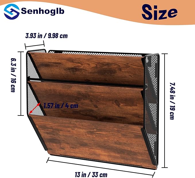 - Space Saving: This mesh wall file holder has a hanging design, the overall size is 13" x 3.93" x7.48", which can maximize the use of vertical space and keep the desktop in order, the wall file organizer is a good helper for office and life