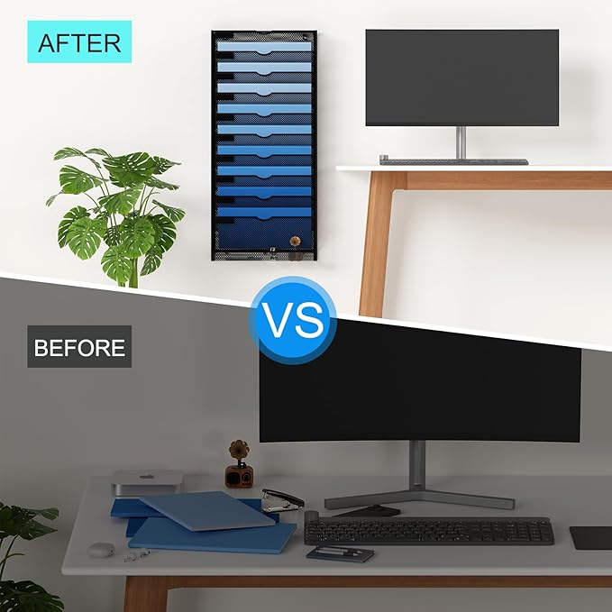 - 【Durable Metal Structure】Our wall mounted file organizer is made of high quality metal mesh. The metal structure is powder coated to resist oxidation and rust, making this wall mounted office file organizer of superior quality and durability