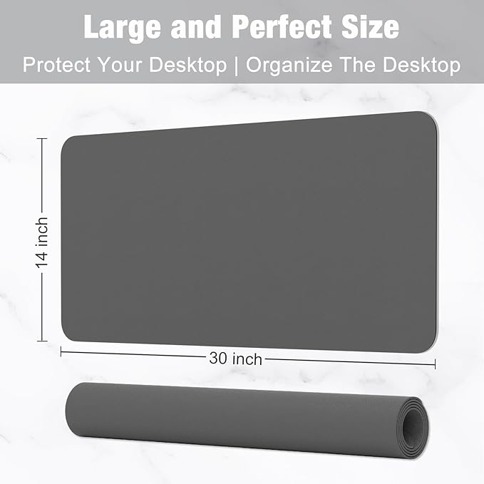 - Large and Perfect Size: Measures 30 x 14 inches, the desk pad can fully cover the desktop to protect your table from scratches or stainsand, large enough to accommodate your laptop, mouse, keyboard, books. Perfect for daily work, gaming, writting and more