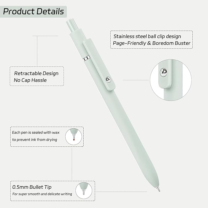 - [0.5mm Fine Point] 0.5mm black ink pens fine point smooth writing pens, writes small and clear, the pens guarantee bold and legible writing, suitable for both professional and personal use.