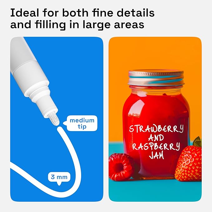 - Medium Tip: Each oil paint pen is made for fine line work. Detail your DIY project with these oil based pens. Each oil based paint marker will add some shine to your art, no matter the occasion – Christmas, birthday, or wedding decorations!