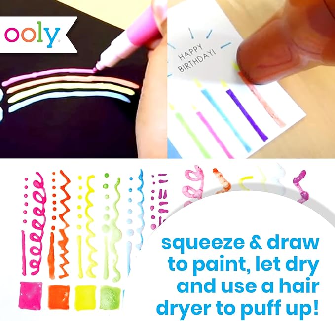 Ooly Puffy Paint Neon Gel Pens 2 Pack (12 Pens), 3D Foam Texture Painting Magic Puffy Pen, Creative and Fun Pens for Kids Arts and Crafts Drawing Supplies