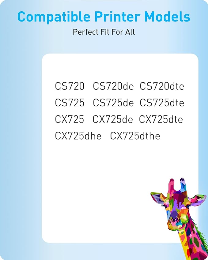 - Compatible Printers: for Lexmark CS720, CS720de, CS720dte, CS725, CS725de, CS725dte, CX725, CX725de, CX725dte, CX725dhe, CX725dthe printer