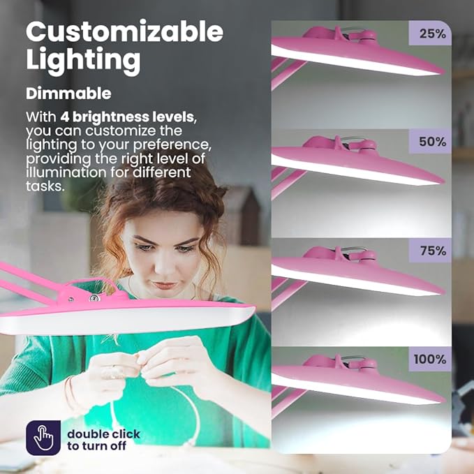 - Personalized Lighting – Features 4 brightness levels (100%, 75%, 50%, 25%) and 3 light modes (3000K–6000K), powered by 20W with 182 SMD LEDs, for tailored lighting needs from projects to reading.