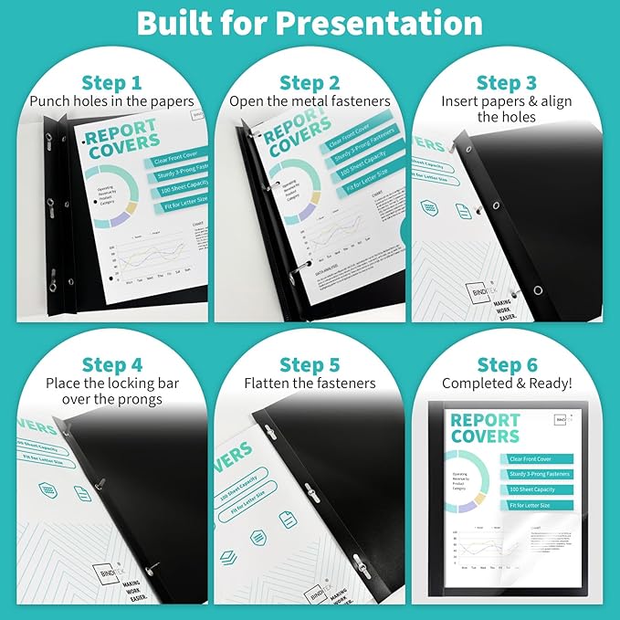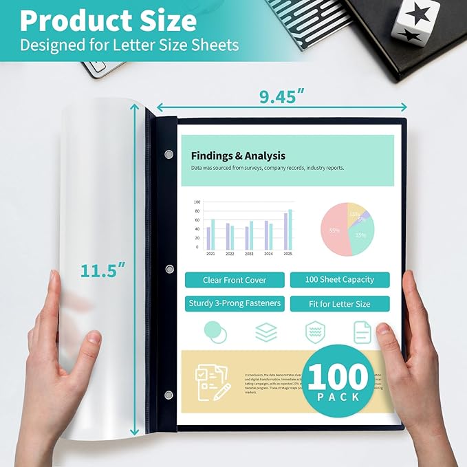 - 【100 Pack for Letter Size】 These report covers with 3 prongs fit 8.5" x 11" documents and come in a reusable 100-pack, ideal for class assignments, business reports, or daily filing. Reinforced construction ensures repeated handling while keeping documents neatly and professionally presented.