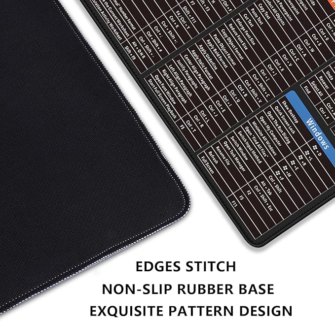 Large Extended Gaming Mouse Pad with Word Excel Office Software Excel Shortcuts PPT Windows,Stitched Edges Non-Slip Waterproof Rubber Base Mouse Pad for Office Desk Pad(27.5X11.8 in)