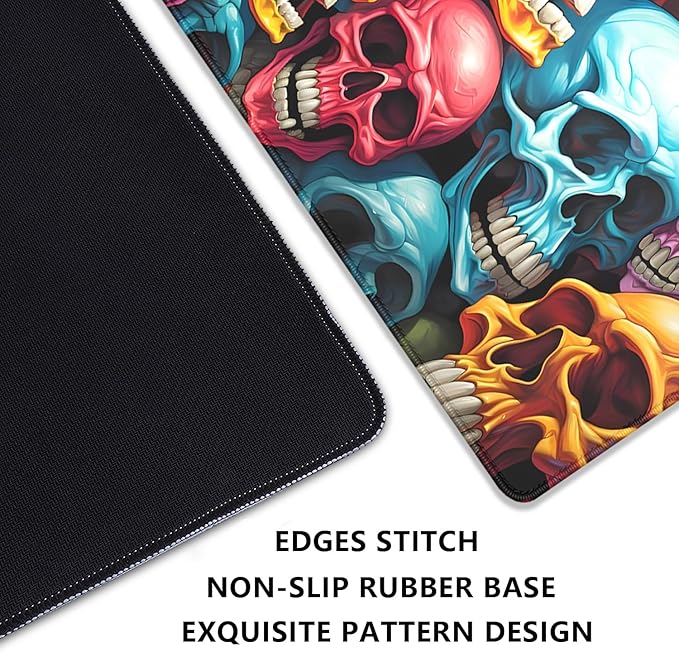 Scary Skeleton Mouse Pad Desk Pad,Colourful Skull Extended Gaming Mouse Mat with Stitched Edges Non-Slip Waterproof Rubber Base Mous Mat for Office Home Game Desk Pad(27.5X11.8 in)